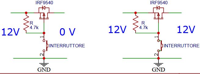 Si è pertanto scelto di usare un normale piccolo economico interruttore che pilota tre Mosfet P che agiscono come interruttori.