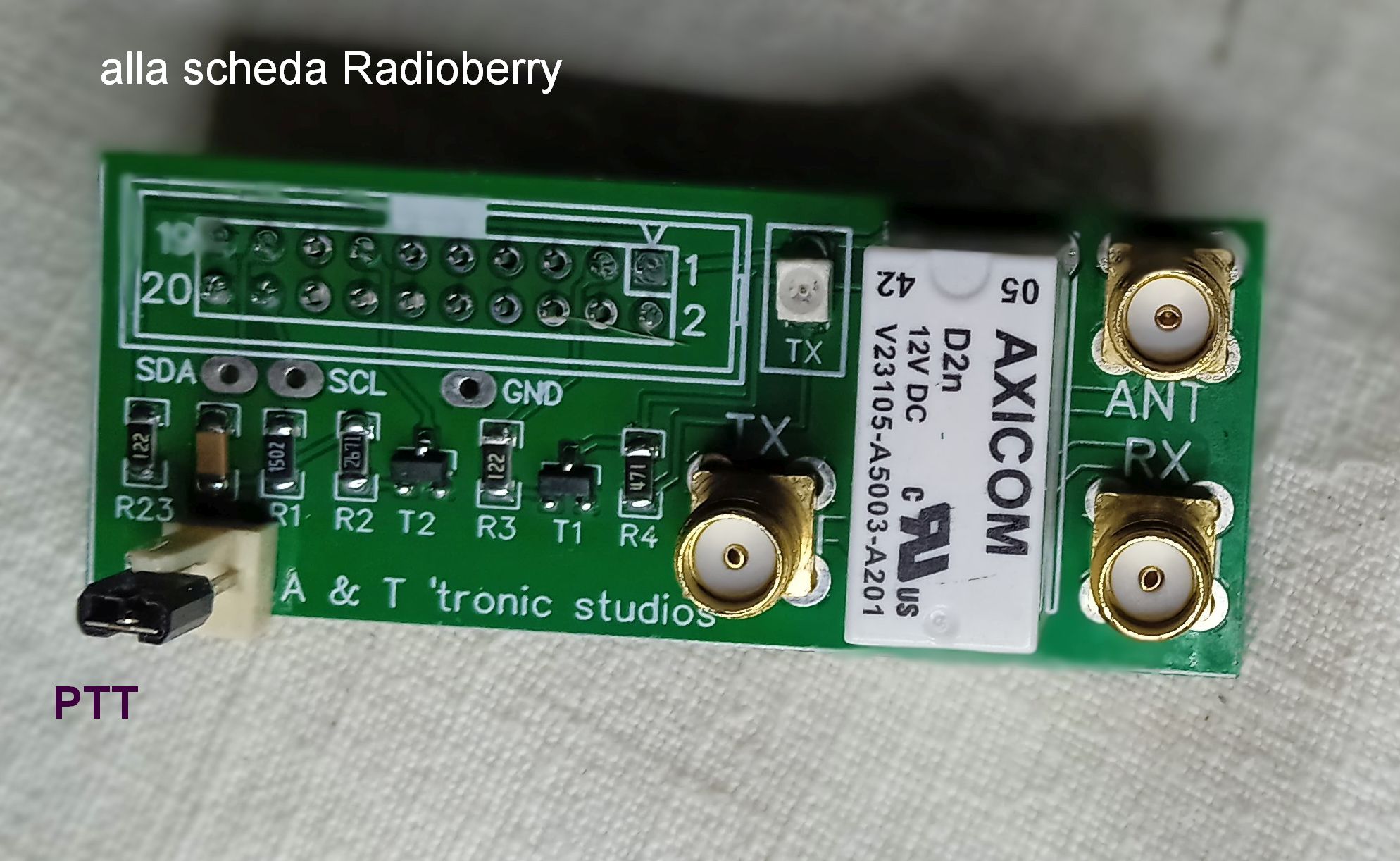 Questa mini scheda comprende la sola circuiteria per il comando PTT ed è stata costruita soltanto per la versione SEMPLICISSIMO del Radioberry, per facilitare la familiarizzazione con il transceiver come versione base.