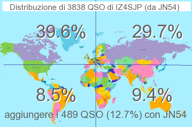 QSO per Zone Italiane| Emilia Romagna | 103 | | Veneto,Trentino,Friuli-Venezia Giulia | 81 | | Basilicata (PZ), Campania, Calabria, Molise | 76 | | Lombardia | 69 | | Lazio,Umbria | 67 | | Piemonte,Valle di Aosta,Liguria | 63 | | Sicilia | 43 | | Toscana | 37 | | Puglia, Basilicata (MT) | 17 | | Sardegna | 16 | | Marche, Abruzzo | 14 | | isole Toscane | 1 | | Totale | 587 |